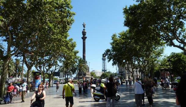 Passeggiata lungo mare fino al Mirador de Colom e risalita lungo le Ramblas fino a Plaza Catalunya, cuore commerciale della città.