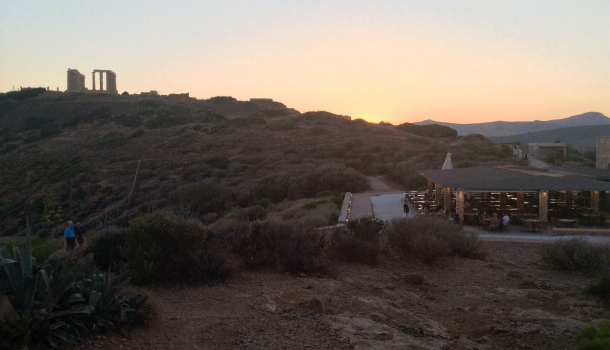 Benchè faccia parte di un golfo dove si trovano diverse strutture ricettive, il promontorio di Capo Sounion è abbastanza isolato: vi si trovano solo i resti archeologici e…un ristorante!