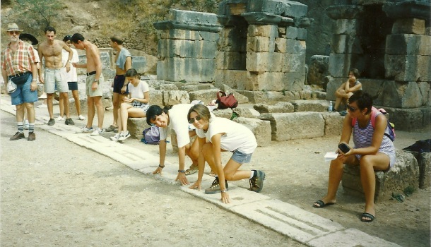 ..e qui ci siamo divertite con un’amica e collega a sfidarci in un’ennesima gara di corsa (come fatto anche allo Stadio di Olimpia), in memoria degli antichi agoni e gustandoci poi degli ottimi fichi da una pianta che cresce ancora dietro i blocchi di partenza!