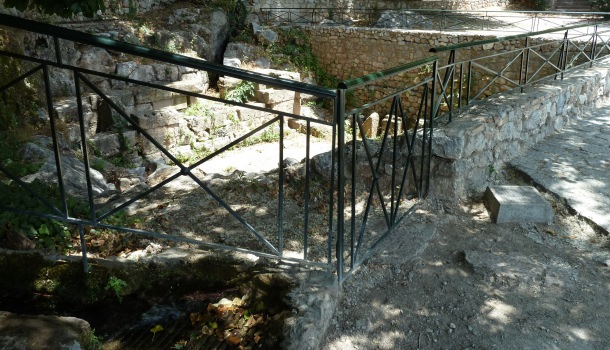 Da qui però inizia il camminamento che si arrampica fino alla cima, dove si trova la fonte di epoca più tarda e che fu poi riadattata a chiesa bizantina.