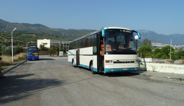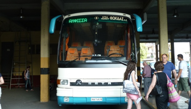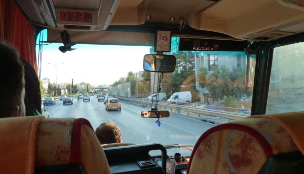 Noi siamo partiti da Atene con la prima corsa della mattina, alle 7.30: il pullman era piuttosto comodo e il viaggio è stato tranquillo.