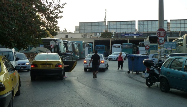 una volta usciti, rimanendo sul lato della stazione, bisogna prendere l’autobus (va bene il primo che passa perchè tutti vanno nella stessa direzione) e contare 4 fermate; scesi alla fermata, andando a destra, fatti pochi passi troverete una strada sulla vostra sinistra; in fondo alla strada c’è il Terminal B, da dove partono i pullman per la Grecia centro-settentrionale.