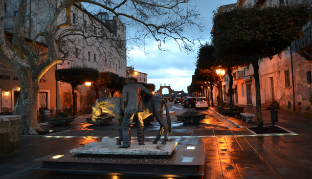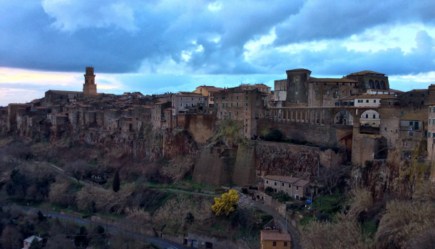 Piazza di Pitiglianotramonto e visita by night al borgo di Pitigliano.